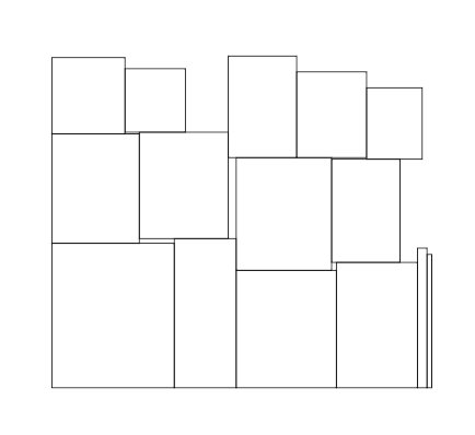 Функция прямоугольного раскроя позволяет компоновать прямоугольники с нулевым расстоянием.