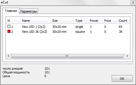 Так же легко быстро определить число использованных диодов, их стоимость и потребляемую мощьность.