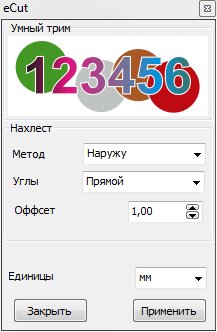 [Компоновка][Вывод на плоттер и контурная резка][Периметр][Площадь][Калькулятор цены][Машинное время][Вспомогательные линии][Тираж][Прямоугольный раскрой][Диоды][Неон][Печать эскиза][Средняя линия][Умное деление][Соединить открытые пути][Сглаживание][Поиск пересечений][Поиск дубликатов][Поиск объектов][Создать кассету][Создать линии][Создать сетку][Создать печатные метки][Упростить кривую][Векторные эффекты][Боковой разворот][Создать файл для контурной резки][Разделит объект][Удалить дублирующиеся грани][Разрезать объект][Расставить люверсы][Создать окантовку][Выравнивание][Задать размер][CAD функции][DXF экспорт][Заменить объекты][Относительное масштабирование][Создать перемычки][Переменные][Резка струной][Оптимизатор пути][Коробка шип-паз][Объект шип-паз][Калькулятор объема][Дверные фасады]