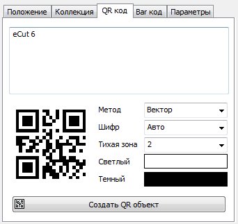 Программа может генерировать QR коды, в данной вкладке можно задать их параметры, а так же создать отдельный одиночный объект.