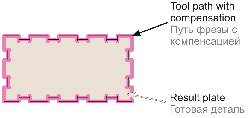 Если вы используете фрезер, то программа может скомпенсировать диаметр фрезы для того, чтобы шип вошел в паз до конца.