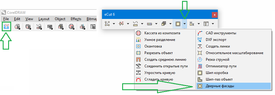 [Компоновка][Вывод на плоттер и контурная резка][Периметр][Площадь][Калькулятор цены][Машинное время][Вспомогательные линии][Тираж][Прямоугольный раскрой][Диоды][Неон][Печать эскиза][Средняя линия][Умное деление][Соединить открытые пути][Сглаживание][Поиск пересечений][Поиск дубликатов][Поиск объектов][Создать кассету][Создать линии][Создать сетку][Создать печатные метки][Упростить кривую][Векторные эффекты][Боковой разворот][Создать файл для контурной резки][Разделит объект][Удалить дублирующиеся грани][Разрезать объект][Расставить люверсы][Создать окантовку][Выравнивание][Задать размер][CAD функции][DXF экспорт][Заменить объекты][Относительное масштабирование][Создать перемычки][Переменные][Резка струной][Оптимизатор пути][Коробка шип-паз][Объект шип-паз][Калькулятор объема][Дверные фасады]